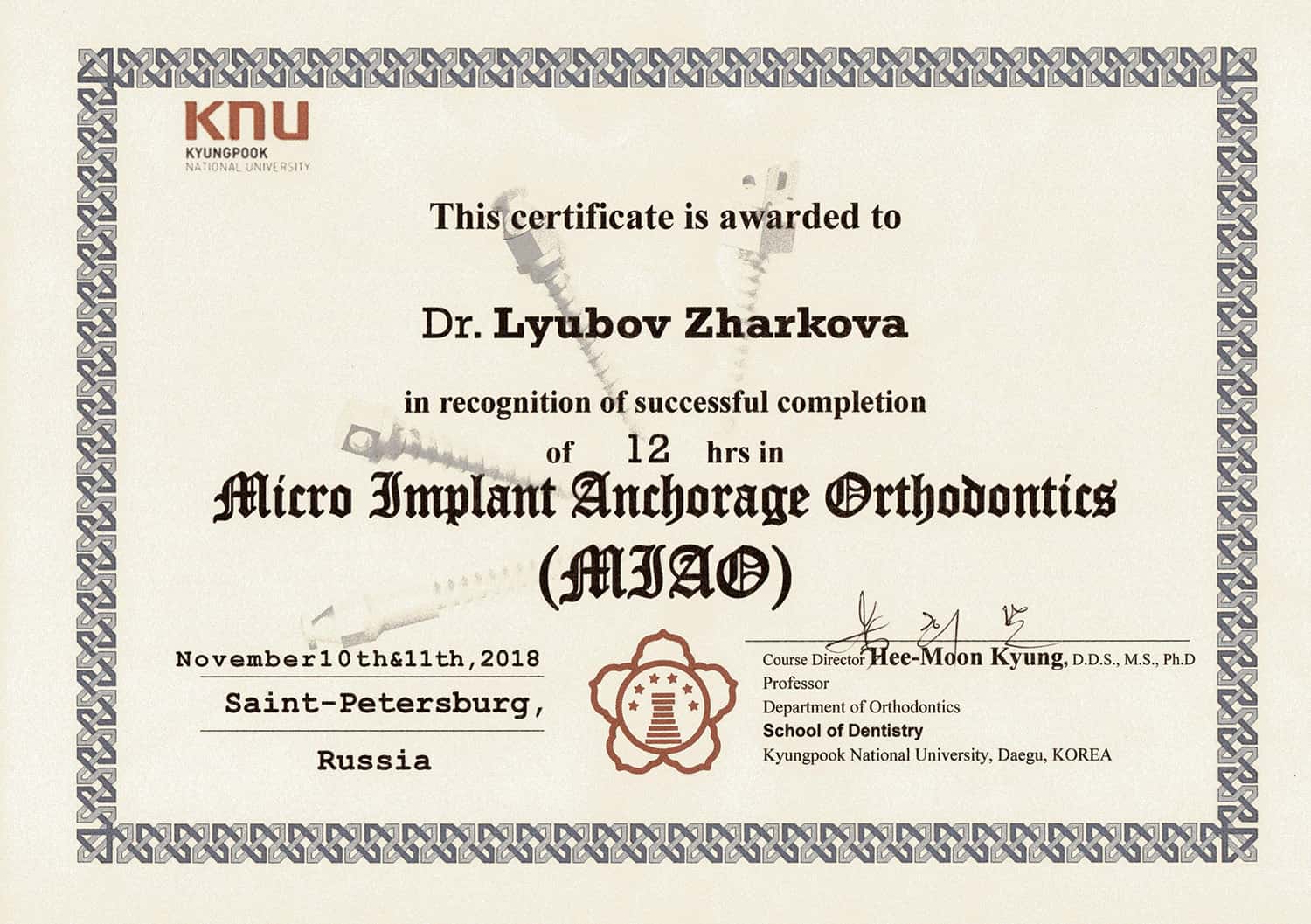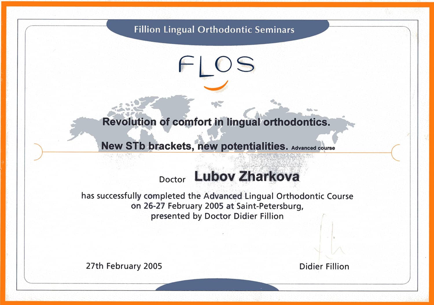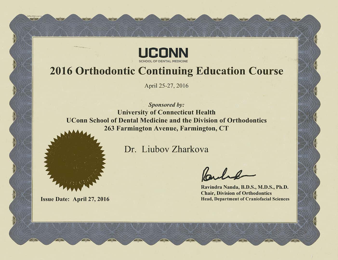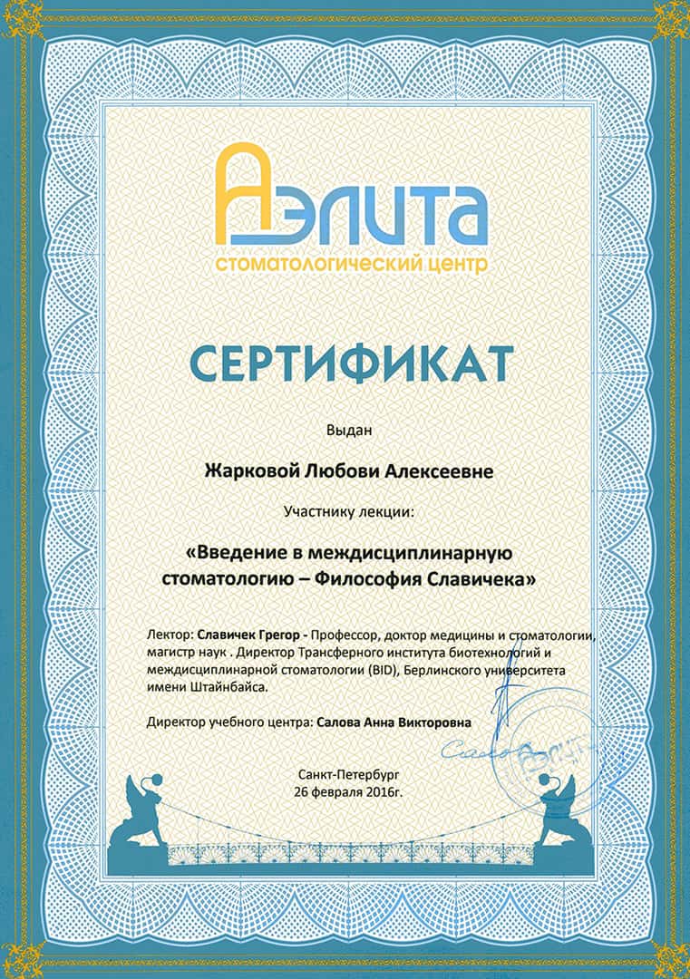 В 1990 году окончила клиническую ординатуру по специальности «Ортодонтия» в Первом Ленинградском медицинском университете им. академика И.П.Павлова.